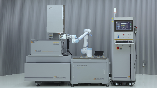 为了解决新能源汽车、航空航天等领域复杂精密零部件批量化自动加工需求,瑞钧智科于2024年开发出了“灵动切割工作站”。该设备搭载自动穿丝系统,配置协作机械手、精密夹具快速定位系统等,通过系统间的高效协作,完成工件的自动化上下料、无人操作和自动切割,从而实现加工流程全自动化智能控制。机床还可通过网络与公司的运维平台联网,实现在线监控和信息提示。目前该设备已在某家精密制造企业得到应用,并处于从示范应用走向规模推广阶段,展示了往复走丝电火花线切割机床向全自动化、柔性化升级的方向,也揭示了往复走丝电火花线切割机床融入高端智造车间,实现自动化、无人化生产的趋势,成为构建无人化车间和柔性制造单元的关键环节。王树钧表示,目前装备制造业已经从“制造”全面迈向“智造”和“创造”,这就要求在制造的前端和后端,引入新的技术方案。瑞钧的立身之本是技术创新,必须以技术拓展未来。瑞钧智科已经站在一个较高的起点,必须迎合时代发展的趋势,借助现代化通讯、工业互联网和智能制造等技术手段,将电火花机床赋予新质内涵。