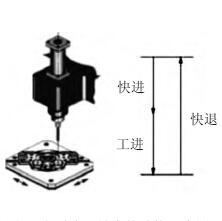 (二)利用 Fluid SIM 仿真软件的直观性,系统性、条理性分析液压传动系统对于液压传动系统和电气回路可利用 Fluid SIM 仿真软件进行系统性、条理性的演示,使学生在学习时能够正确把握液压传动系统学习的方式、方法,避免出现无从下手的局面。下面以小型液压钻床液压控制系统为例利用 Fluid SIM 仿真软件进行液压传动系统分析。小型液压钻床的结构如图 1 所示。小型液压钻床工作流程:按下启动按钮液压缸活塞杆伸出,钻头快速下降,到达加工位置后(有行程开关控制),减速缓慢下降,对工件进行钻孔加工。加工完毕后,按下另一个按钮控制液压缸活塞回缩。要求钻孔时钻头下降速度可以根据需要调节(通过观察钻床的运行加深理解)。